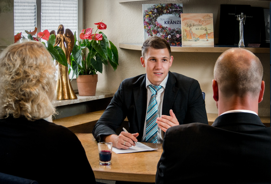 Wie das Geborenwerden und das Wachsen gehört das Sterben und der Tod zu unserem Dasein. Trotzdem sind Tod und Bestattung Ausnahmesituationen, sie gehören nicht zu den gewohnten Geschehnissen des täglichen Lebens.Bei einem Sterbefall treten an die Hinterbliebenen eine Fülle kaum zu beantwortender Fragen heran. Dazu kommen Trauer, Schmerz, die lähmen und oftmals geradezu hilflos machen. Ihnen hier zu helfen, die Sorge und die Besorgungen für die Bestattung mit allen dazu gehörenden Erfordernissen abzunehmen und darüber hinaus Ihnen selbst bei persönlichen Anliegen helfend beizustehen, dies betrachten wir als unsere Aufgabe. Im ersten Gespräch mit uns werden alle notwendigen Formalitäten abgesprochen. Das Beratungsgespräch kann im Haus der Begegnung in Alzey, in einer unserer Filialen oder auf Wunsch bei Ihnen zu Hause stattfinden.